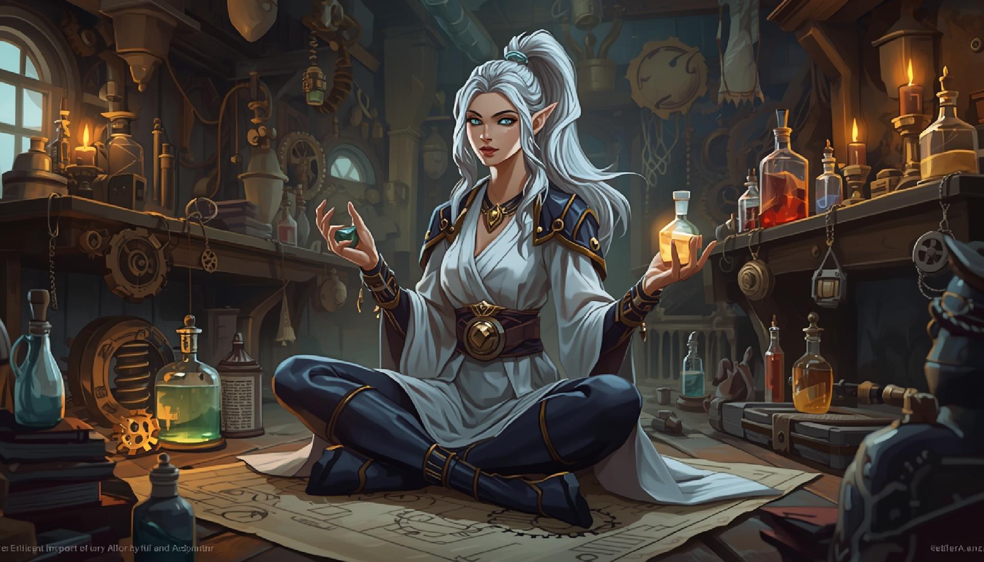 Brasskeese (laughs): “No, you elf disaster. I want you to think like an engineer. Build things that work without you. Potions that heal when you’re not there. Tools that save lives when you’re too exhausted to cast. Stop being the hero. Start being the SYSTEM.”